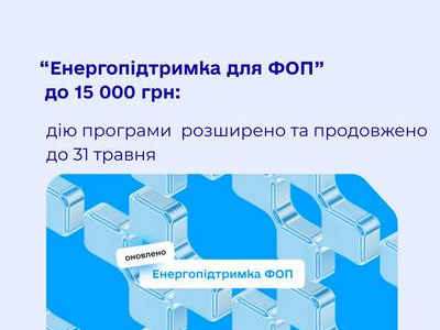 Уряд ухвалив рішення розширити програму «Енергопідтримка ФОП» та продовжити термін подання заяв на отримання одноразової допомоги ще на два місяці – до 31 травня 2026 року
