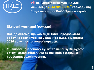 Важливе повідомлення про продовження робіт з розмінування на території громади командами The HALO trust
