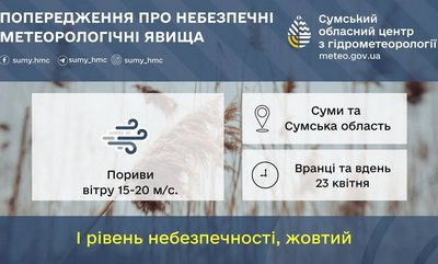 Вночі 21, 22, 24 та 25 квітня по м. Суми та Сумській області очікуються заморозки у повітрі 0-3º (ІI рівень небезпечності, помаранчевий).