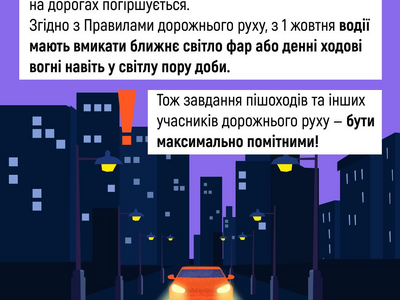 У темну пору доби ризик потрапити у небезпечну ситуацію на дорозі значно зростає.