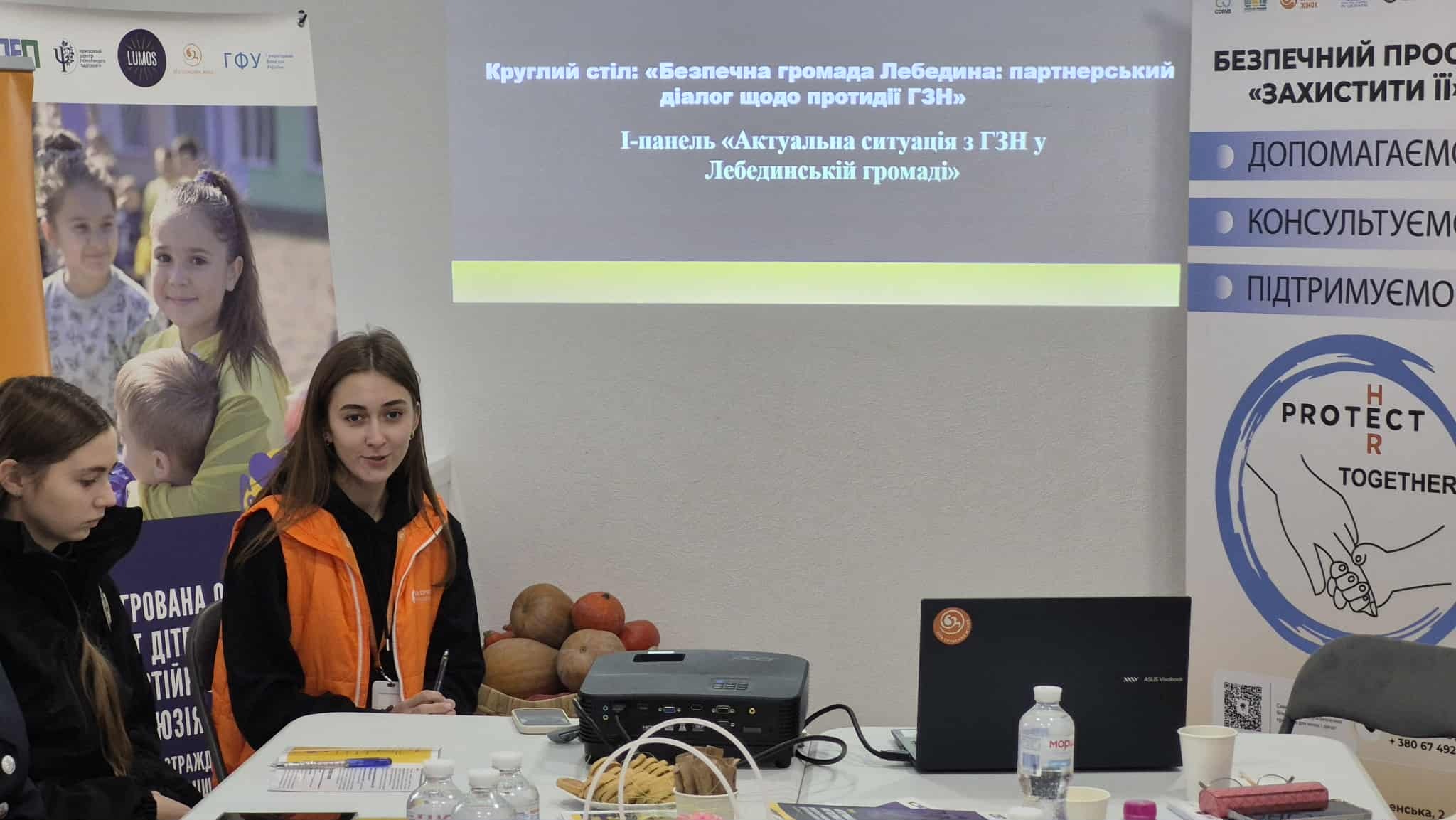 У Лебедині, на базі Безпечного простору для жінок і дівчат, в рамках Всеукраїнської акції "16 днів проти насильства", відбувся круглий стіл на тему “Безпечна громада Лебедина: партнерський діалог щодо протидії гендерно зумовленому насильству”, який об’єднав представників соціальних служб виконавчого комітету міської ради, поліції, громадської організації «Ліга сучасних жінок», благодійного фонду Lumos Україна.