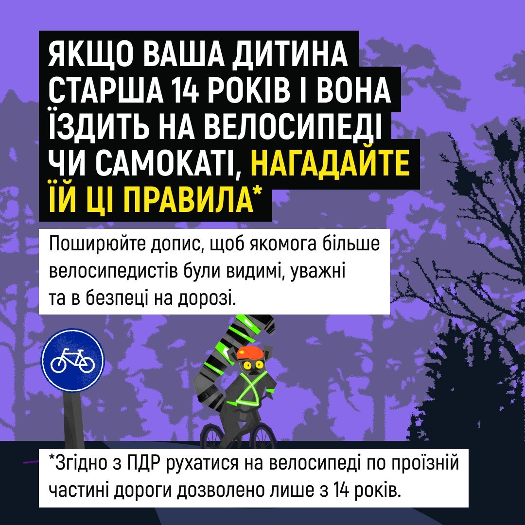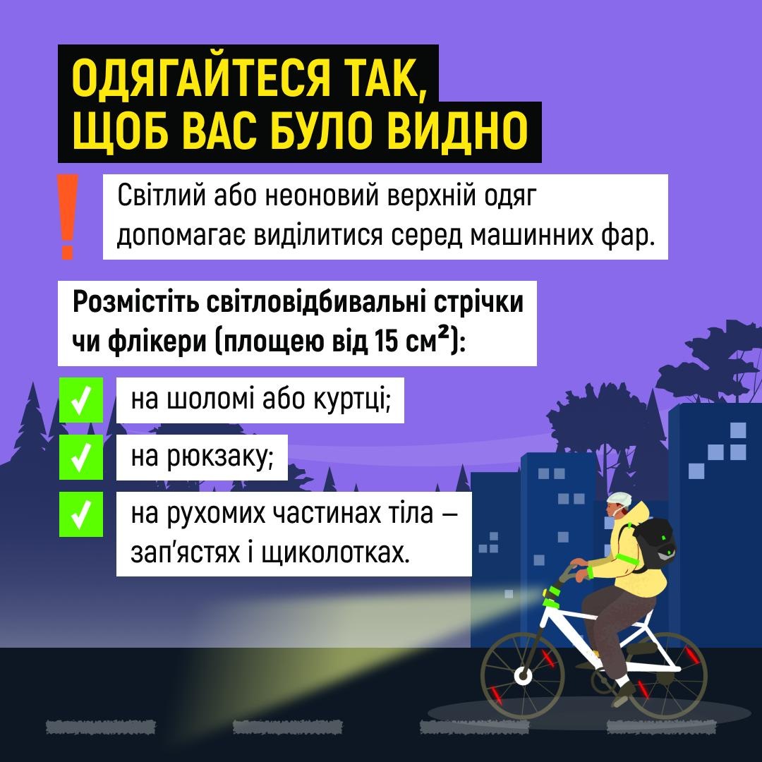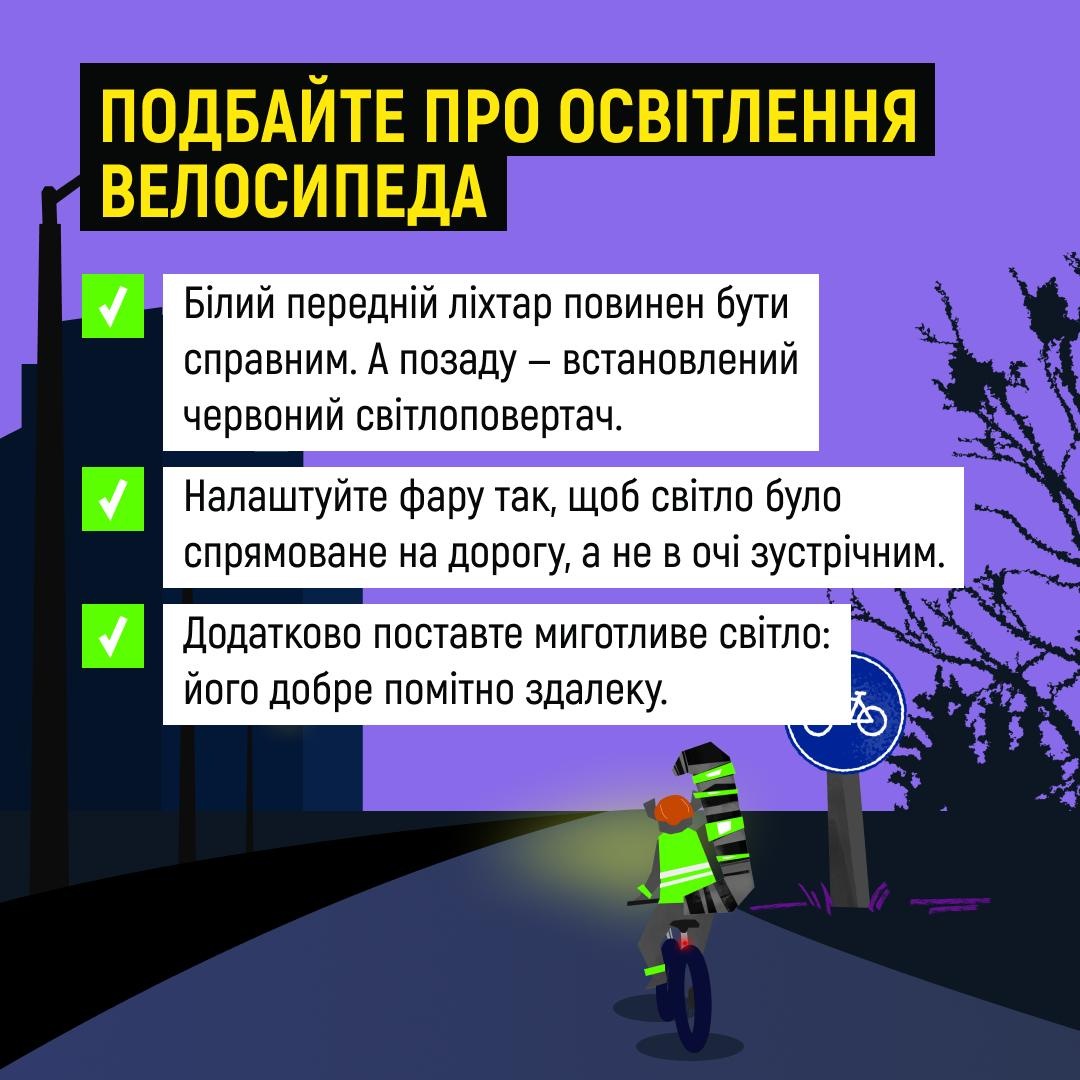 У темну пору доби діти мають відмовитися від поїздок, адже видимість значно гірша, а ризик аварій — вищий.