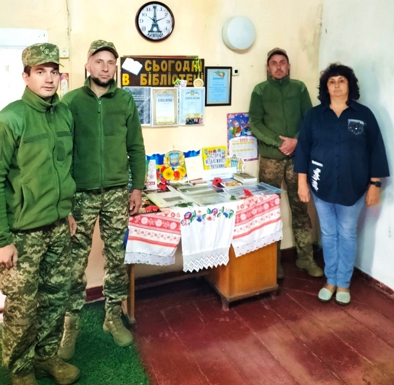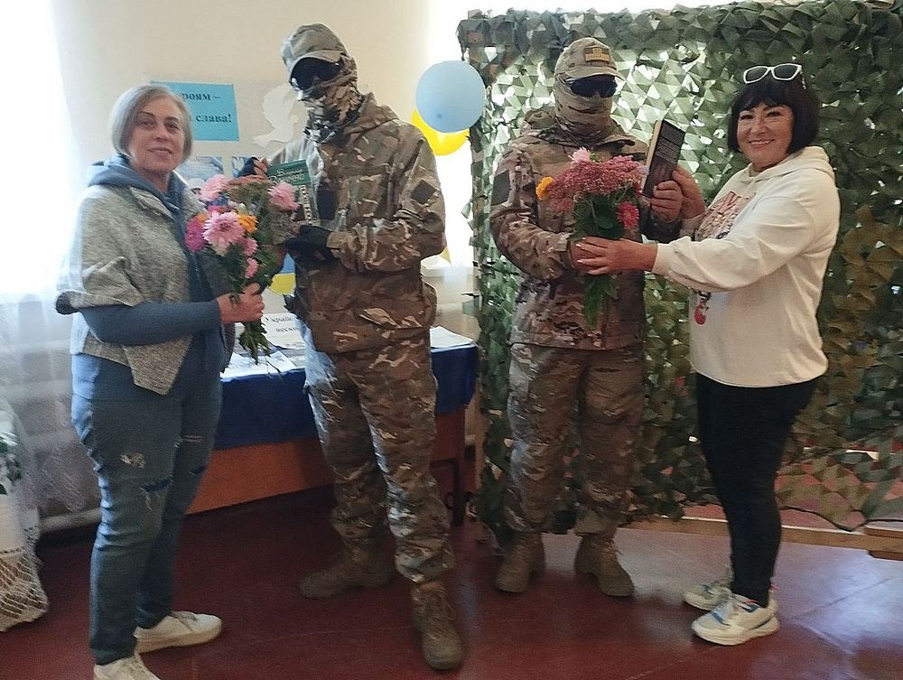 «Солдат війни не вибирає» – під такою назвою в Михайлівській СБФ оформлена книжкова виставка-інсталяція. Напередодні свята в бібліотеці привітали квітами сімейну пару односельчан, учасників бойових дій, чоловіка та дружину, що стали не роздумуючи на захист країни з перших днів війни, за що їм доземний уклін.