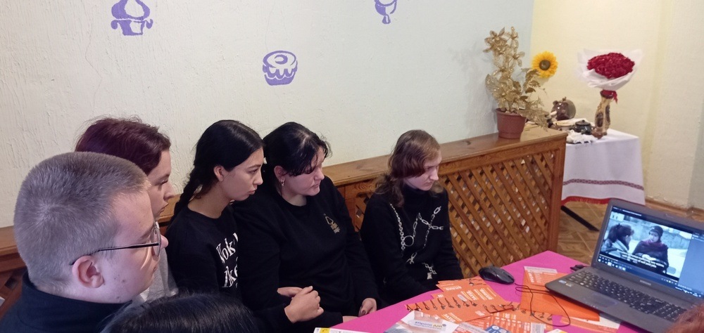 Під час зустрічі учасники взяли участь в інтерактивній грі «Рожеві окуляри», переглянули відеоролик «Життя на продаж» за участю Джамали, Посла доброї волі з протидії торгівлі людьми. Події, показані у відеоролику, викликали емоційне обговорення — молодь активно аналізувала життєві ситуації, висловлювала власні думки щодо побаченого, розмірковувала над причинами й наслідками торгівлі людьми.