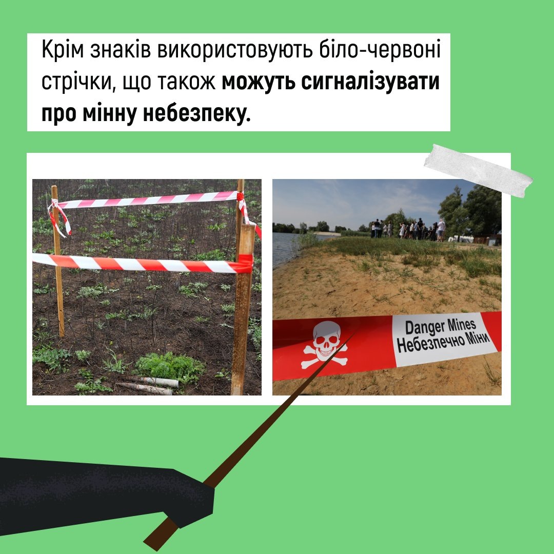 Вибухонебезпечні предмети (ВНП) можуть бути замасковані або залишені на будь-якій ділянці. Саме тому, окрім знання офіційних попереджувальних знаків, необхідно вміти розпізнавати і імпровізовані позначки, які використовують місцеві жителі чи військові для маркування небезпечних територій.