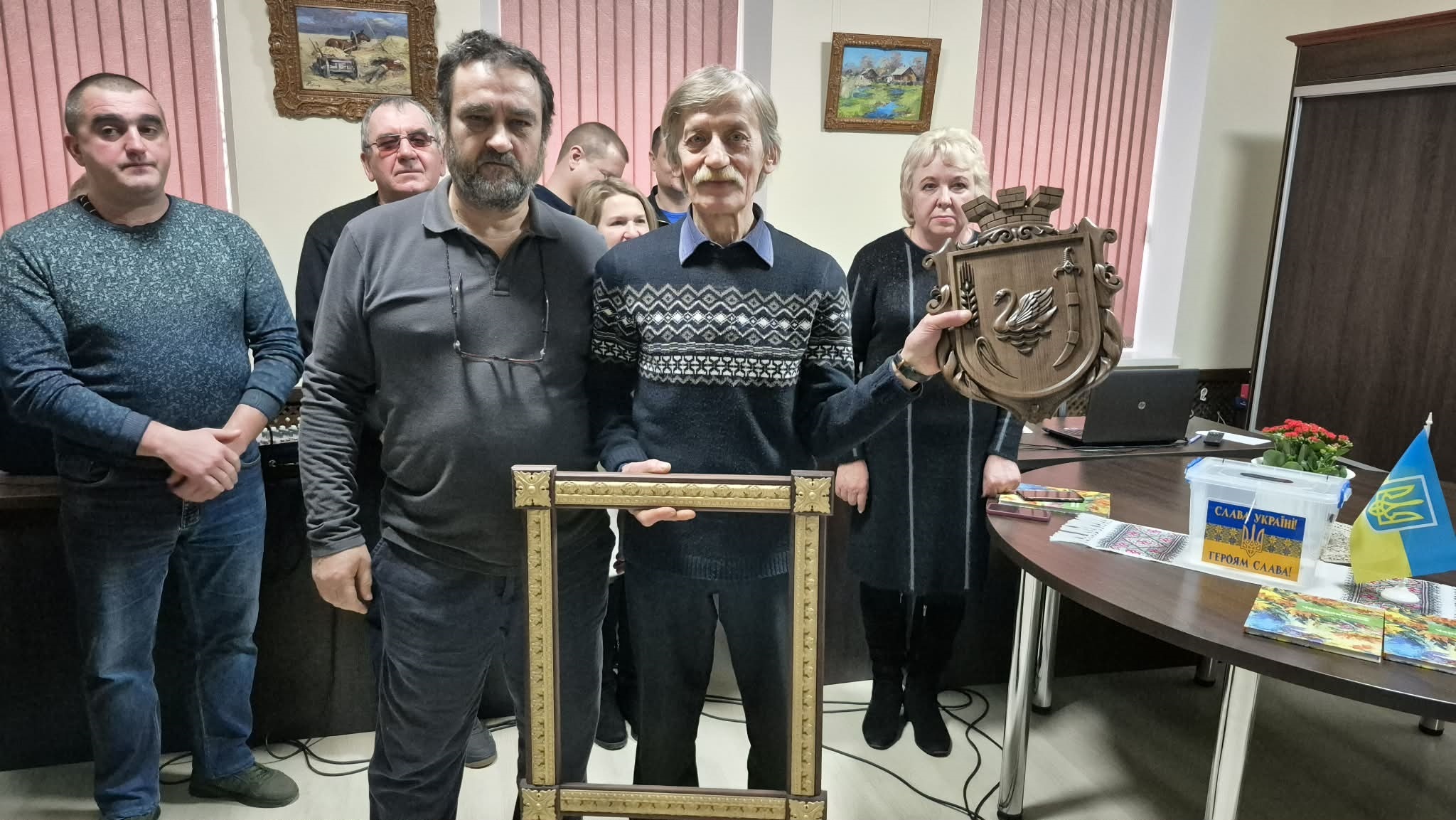 Під час заходу на адресу Олександра Чередниченка пролунало чимало теплих слів привітань і щирих подяк від поціновувачів його таланту. Особливий подарунок художник отримав від директора місцевого підприємства ТМ «БУК» Сергія Букати — дерев’яний герб Лебедина та рамку для картини, як символ поваги, вдячності й визнання його творчого внеску у популяризацію рідного краю.