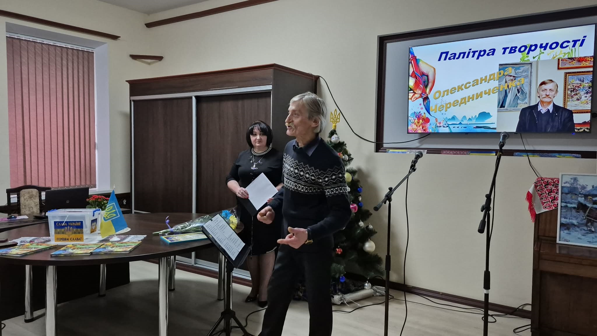 Зі словами привітання до художника звернулася виконуюча обов’язки міського голови Світлана Горошко, яка подякувала митцю за особливу увагу до Лебединського краю, активну громадянську позицію та внесок у популяризацію українського мистецтва. На знак вдячності Олександру Чередниченку вона вручилапочесну грамоту.