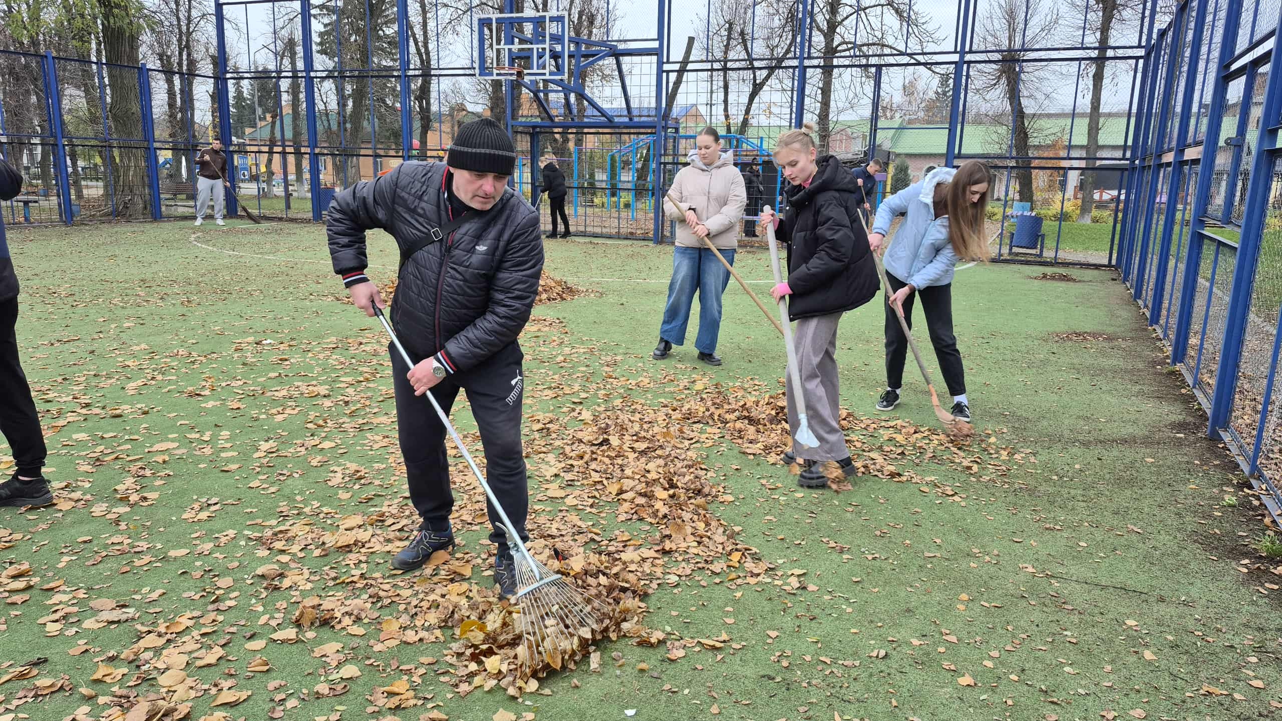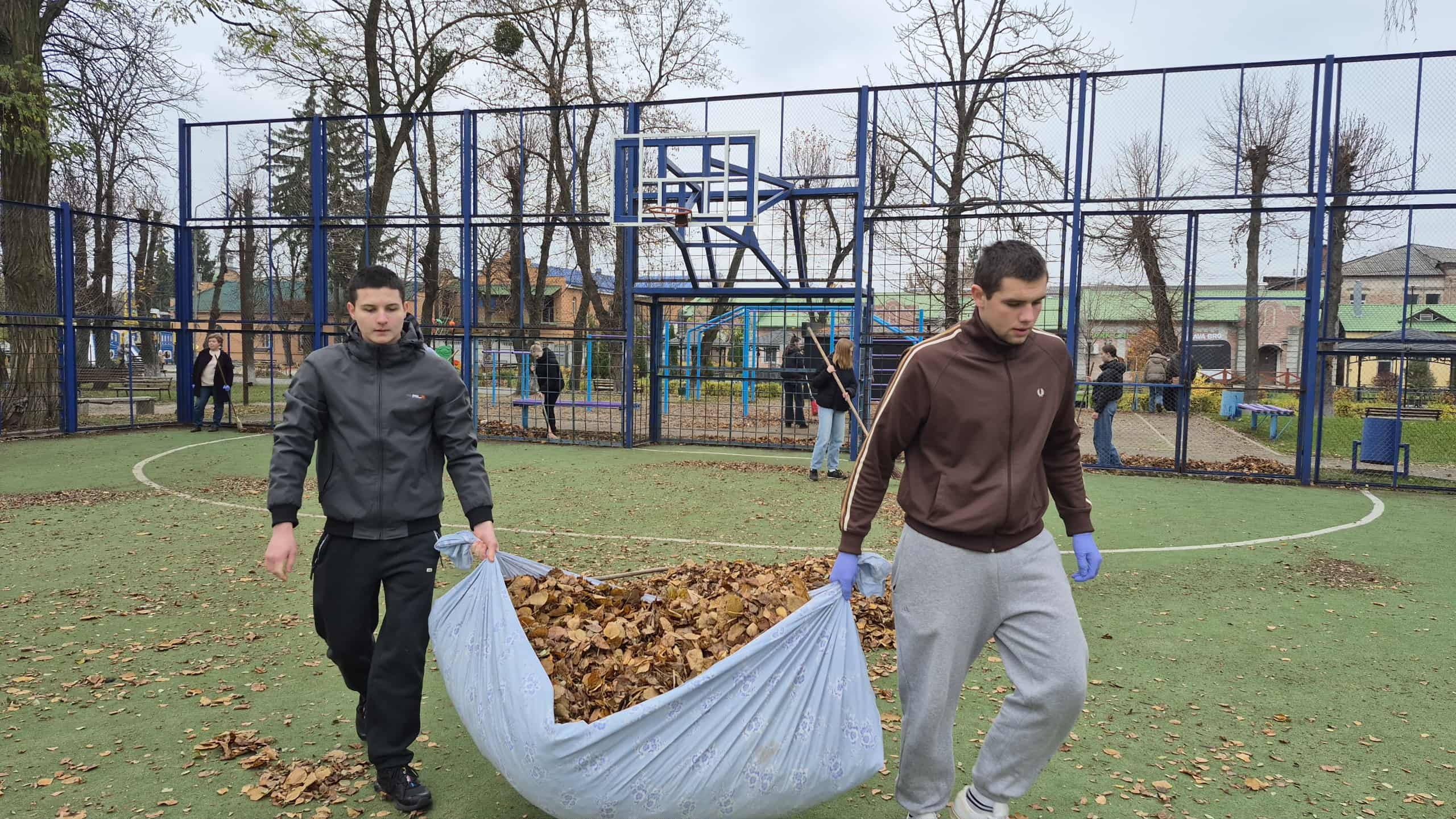 Першими до акції долучилися студенти та викладачі Лебединського медичного фахового коледжу. Вони прибирали опале листя у скверах, де встановлені пам’ятні знаки воїнам, які віддали життя за Україну, біля державних символів, а також на спортивному майданчику та прилеглій території у парку Полуботка.