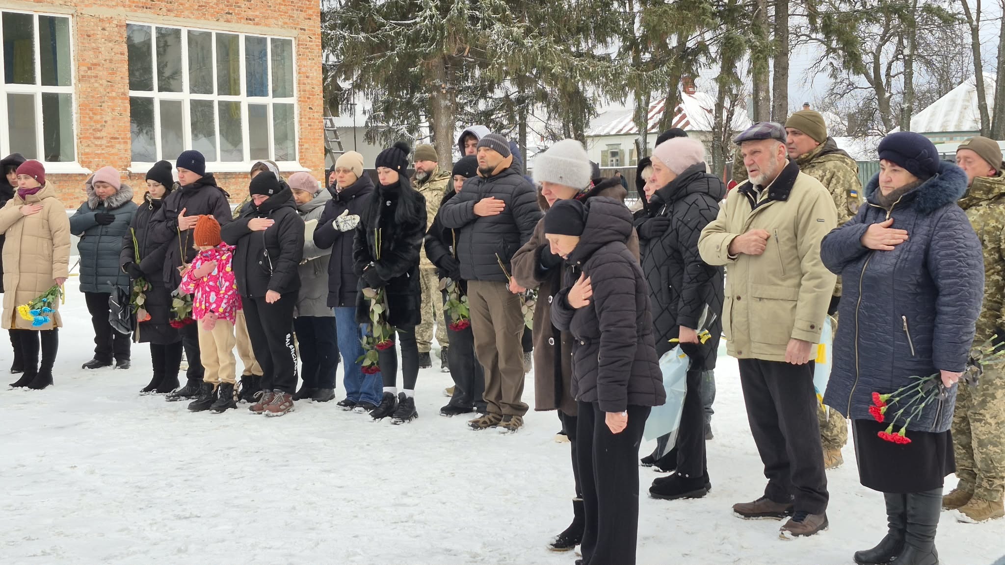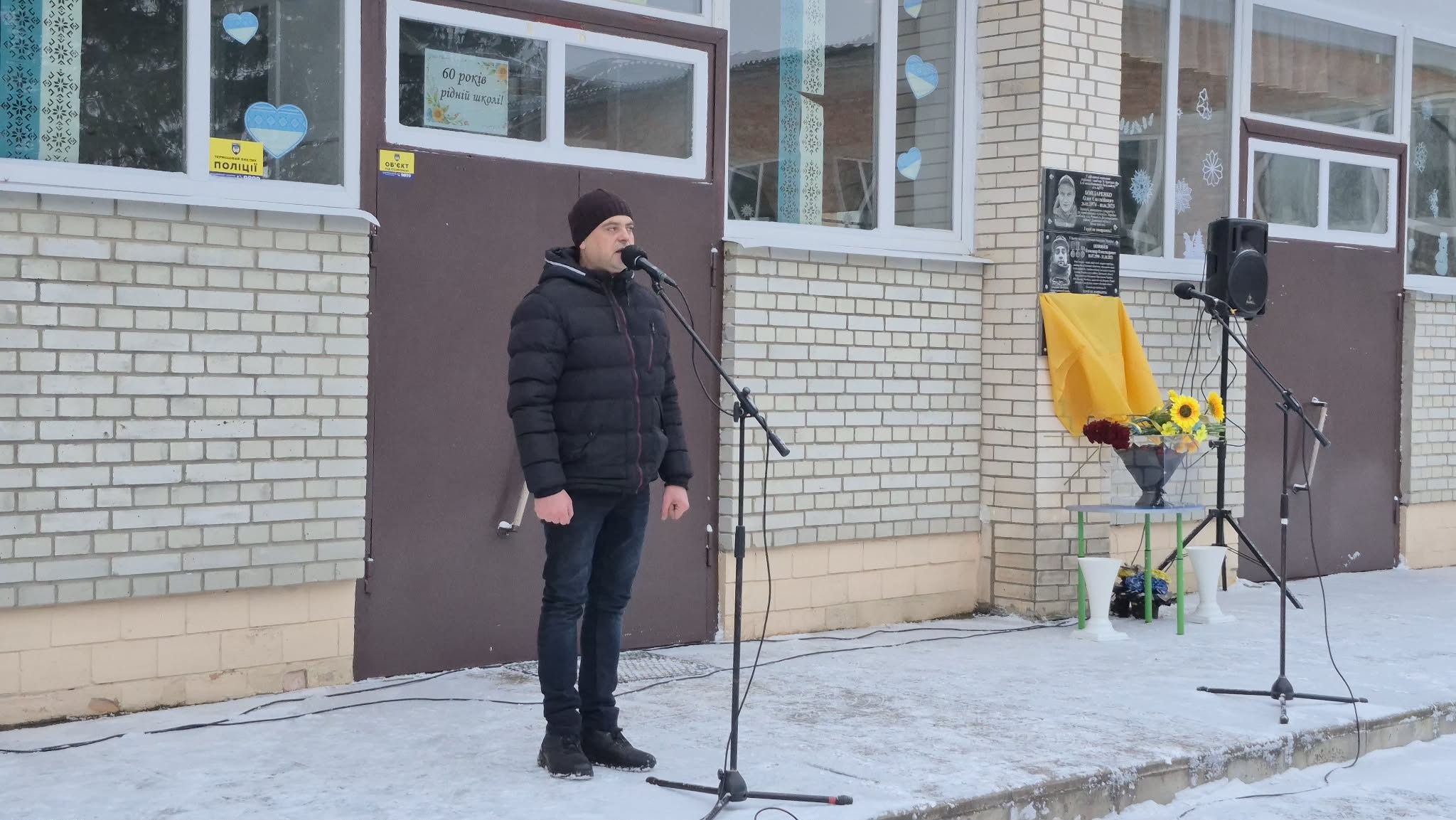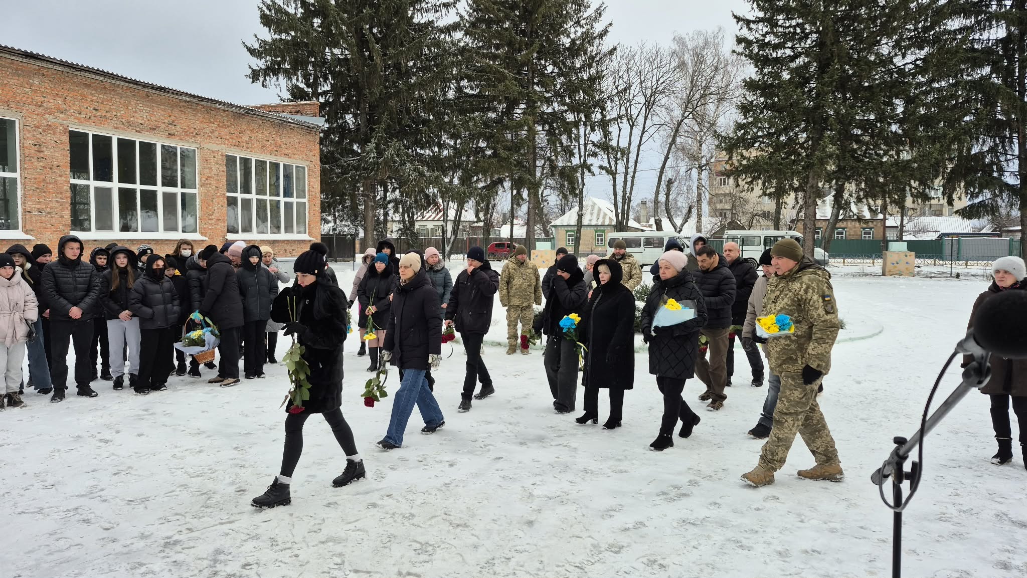 На урочистий траурний мітинг зібралися рідні, друзі, колеги, побратими, педагогічний і учнівський колективи школи, ті, хто знав і поважав покійного.