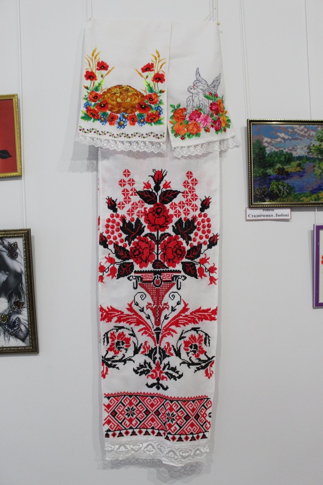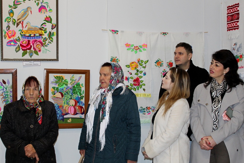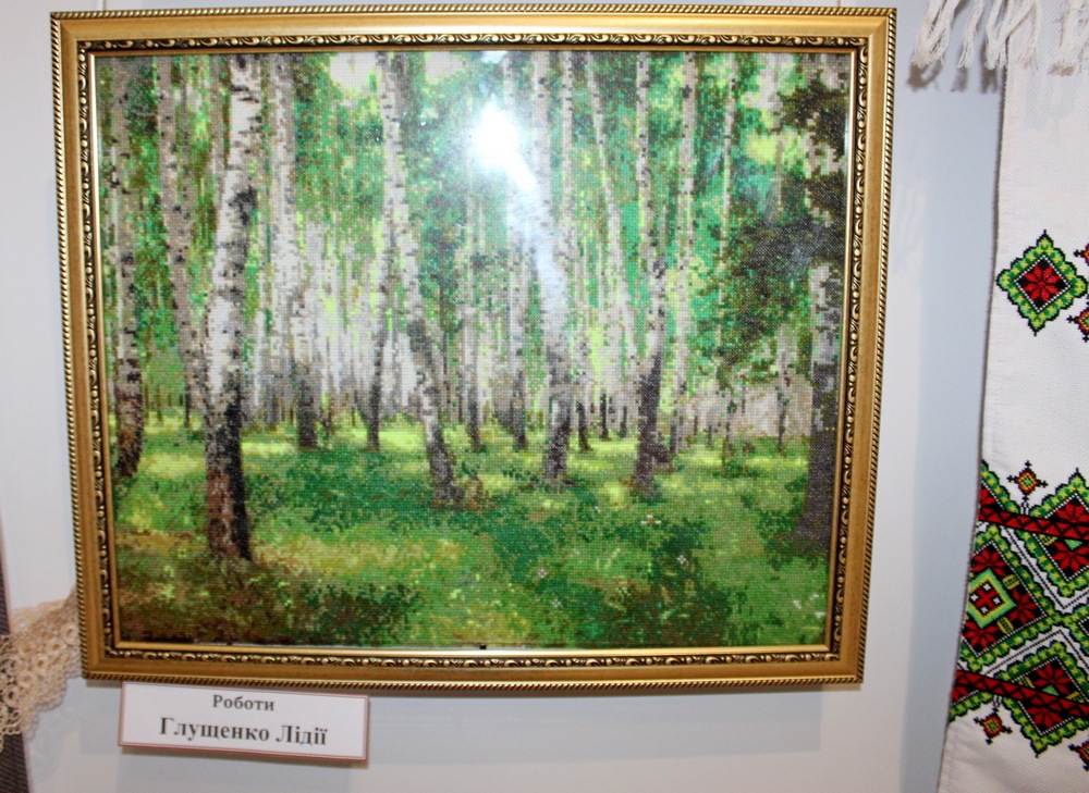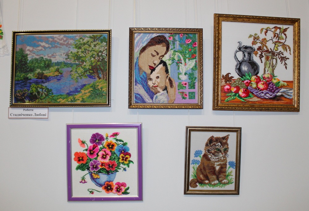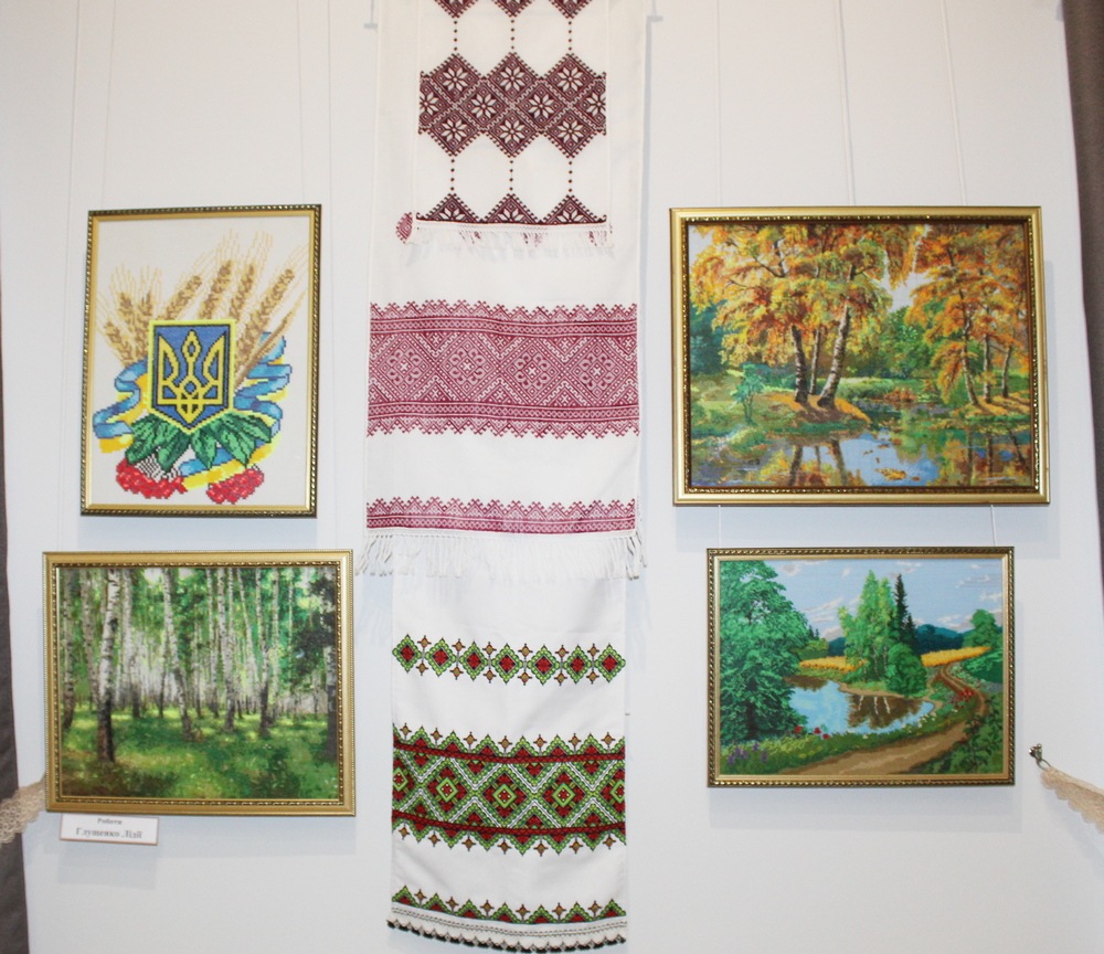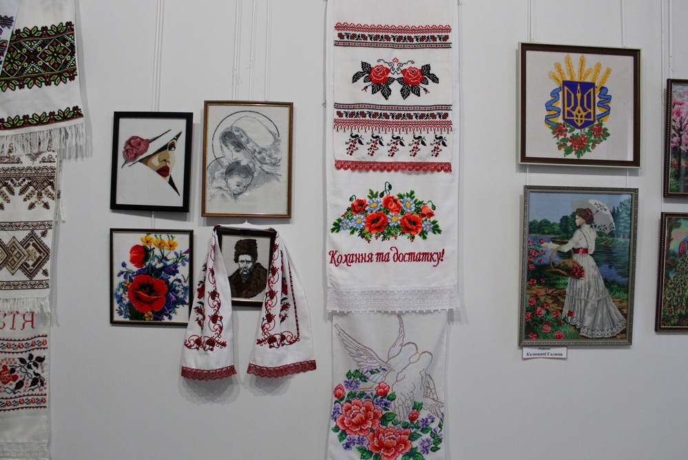Свої роботи надали шість талановитих майстринь громади: Марина Єгорова (м. Лебедин), Зінаїда Левченко (м. Лебедин), Лідія Глущенко (с. Рябушки), Любов Хомишенко (с. Катеринівка), Валентина Стадніченко (с. Катеринівка), Галина Калюжна (с. Калюжні). Кожна продемонструвала неповторність таланту, усі роботи сповнені любові до рідного краю та українських традицій. Стіни виставкового залу музею прикрасили серветки, скатертини, рушники, картини вишиті хрестиком і бісером, які вражали своєю майстерністю, талановито підібраною кольоровою гамою, наповненістю теплом душі їхніх авторів.