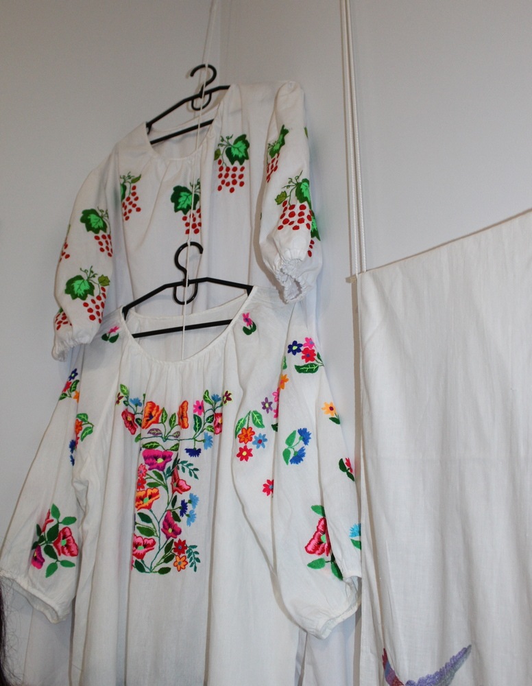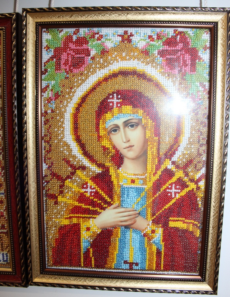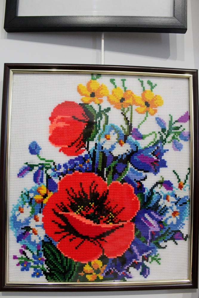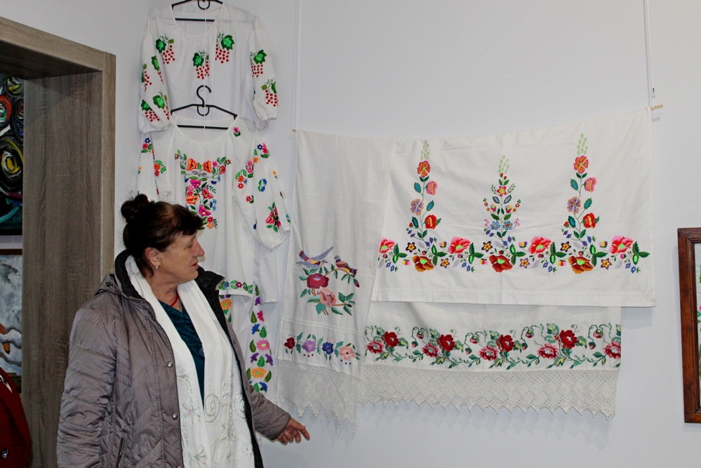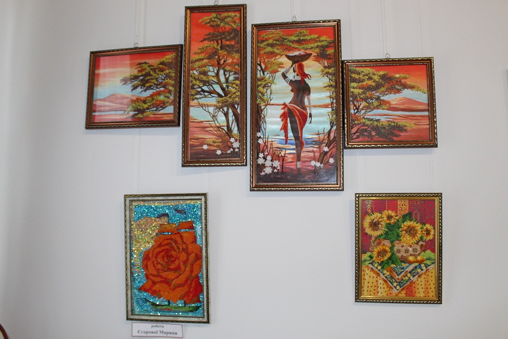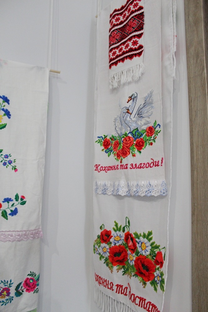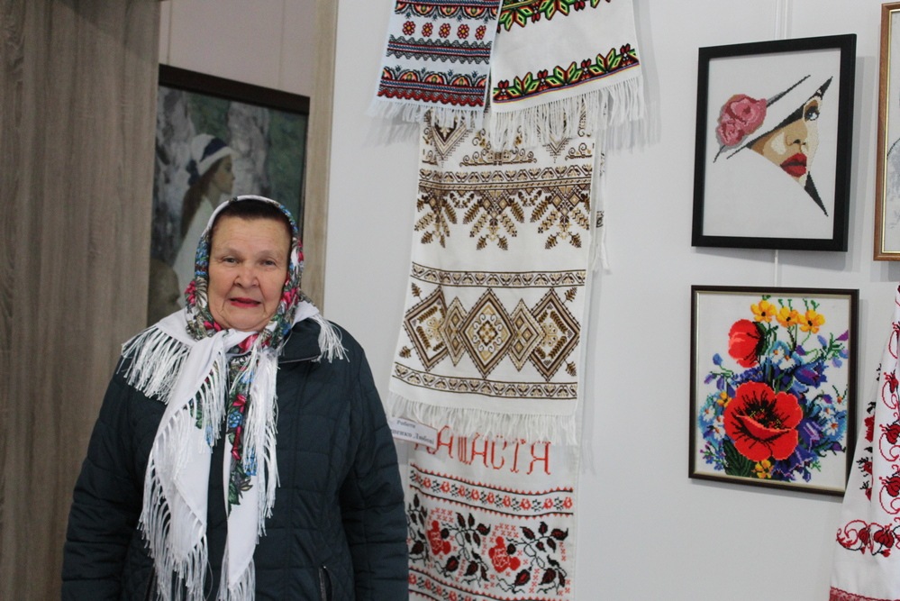 Свої роботи надали шість талановитих майстринь громади: Марина Єгорова (м. Лебедин), Зінаїда Левченко (м. Лебедин), Лідія Глущенко (с. Рябушки), Любов Хомишенко (с. Катеринівка), Валентина Стадніченко (с. Катеринівка), Галина Калюжна (с. Калюжні). Кожна продемонструвала неповторність таланту, усі роботи сповнені любові до рідного краю та українських традицій. Стіни виставкового залу музею прикрасили серветки, скатертини, рушники, картини вишиті хрестиком і бісером, які вражали своєю майстерністю, талановито підібраною кольоровою гамою, наповненістю теплом душі їхніх авторів.