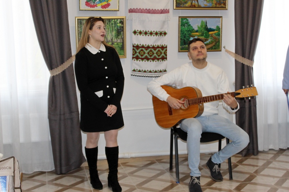 Завершився вернісаж виставки талановитим музичним вітанням у виконанні викладачів Лебединської школи мистецтв – Павла та Катерини Шеремет.