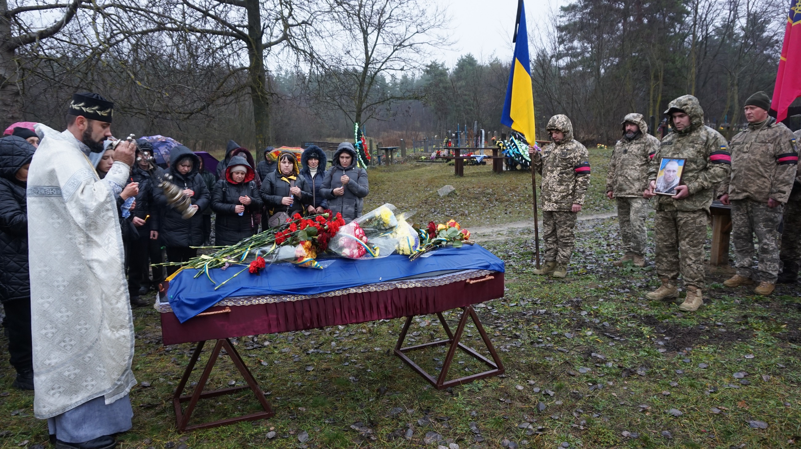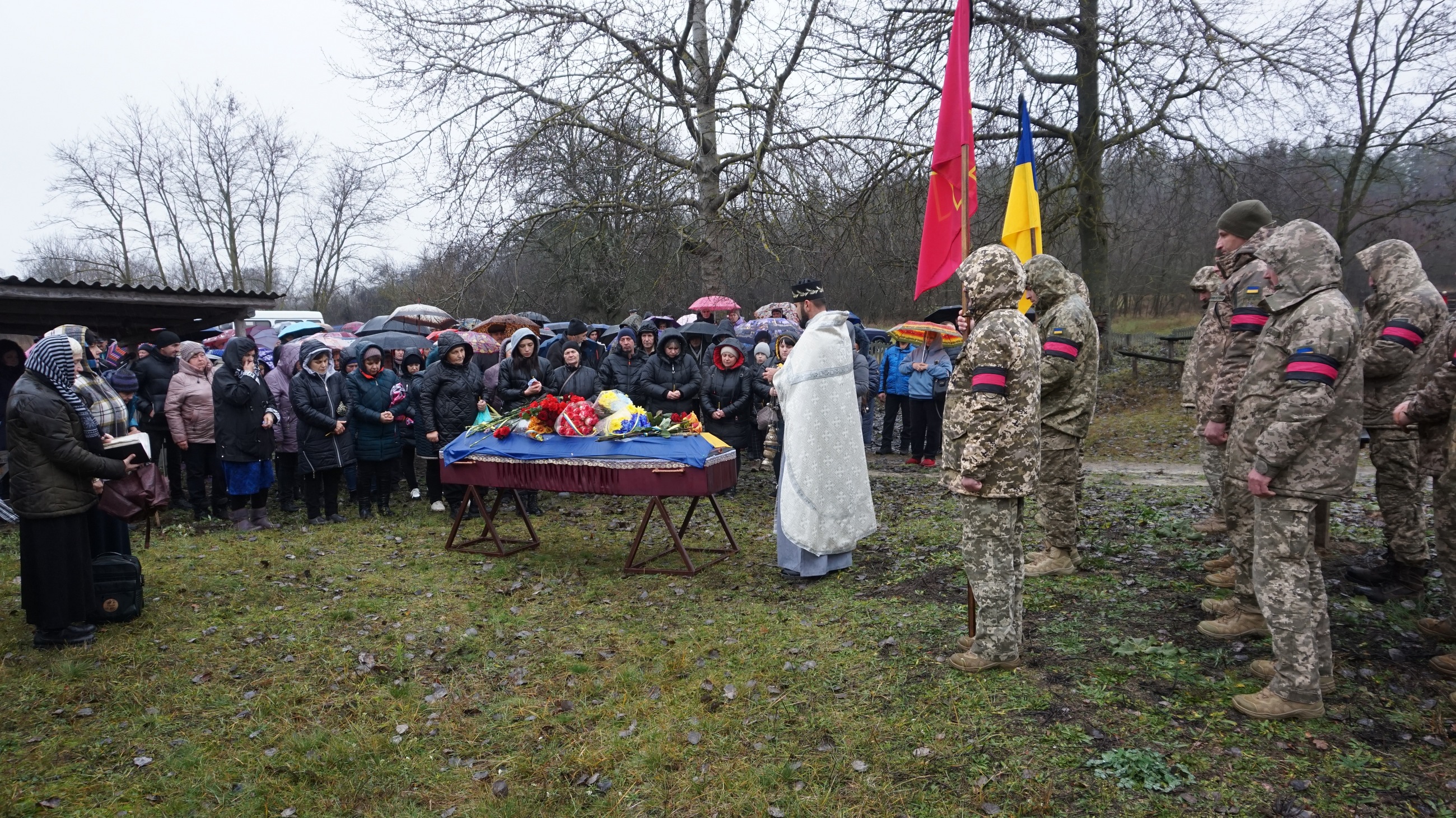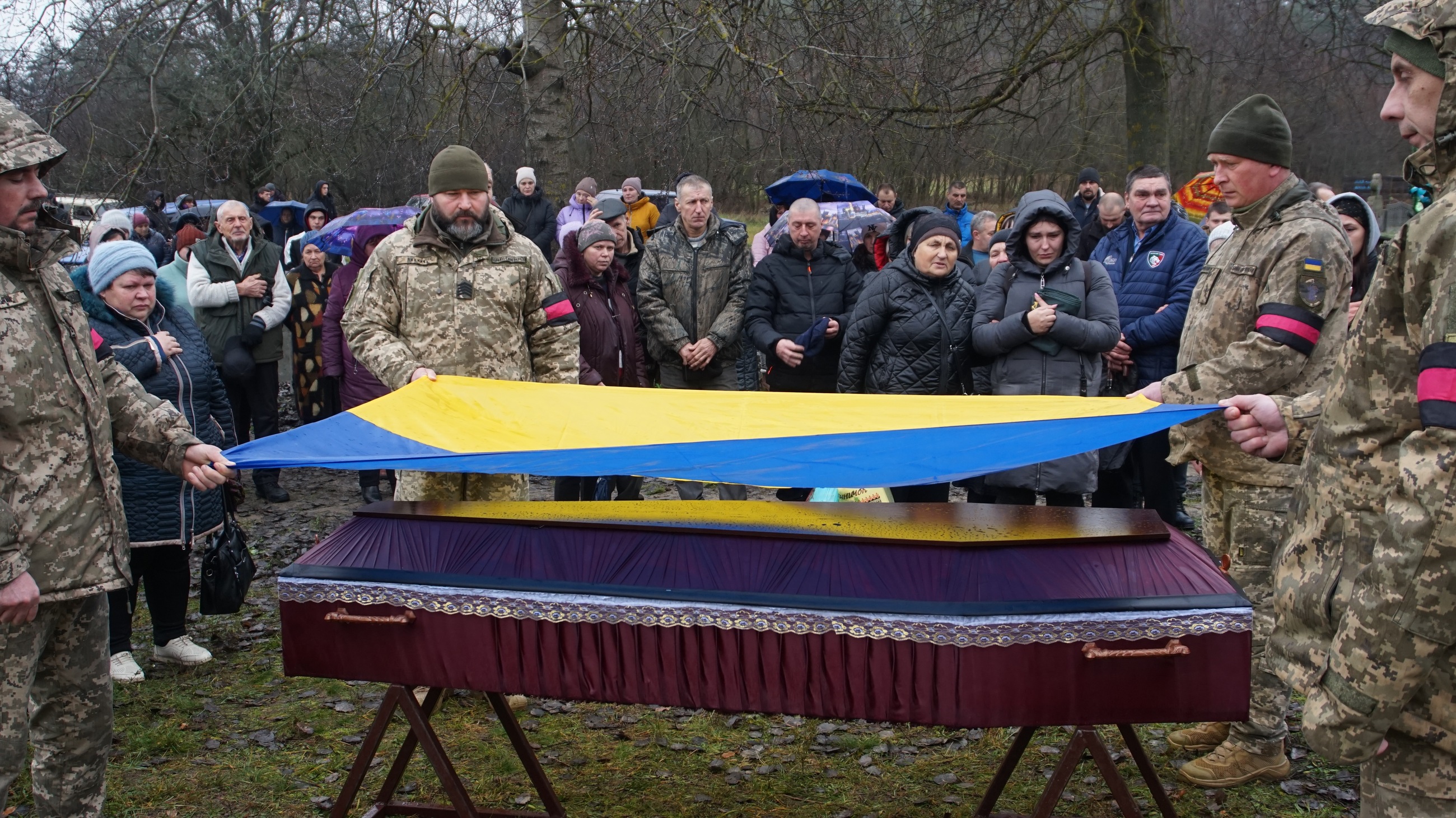 Поховали воїна з усіма військовими почестями — під звуки Державного Гімну України та триразовий залп почесної варти.