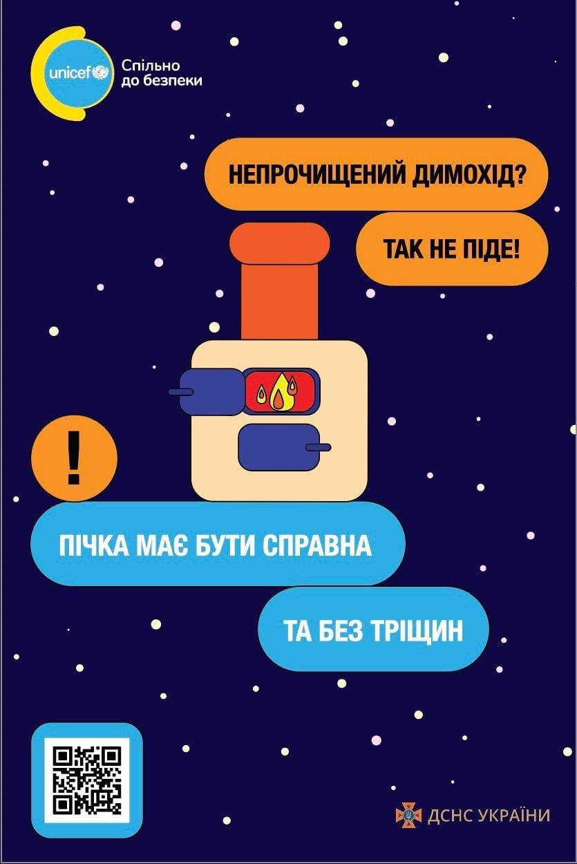 Використовуйте печі, каміни, буржуйки лише в добре провітрюваних приміщеннях і з справним димоходом, не залишайте обігрівальні прилади без нагляду.