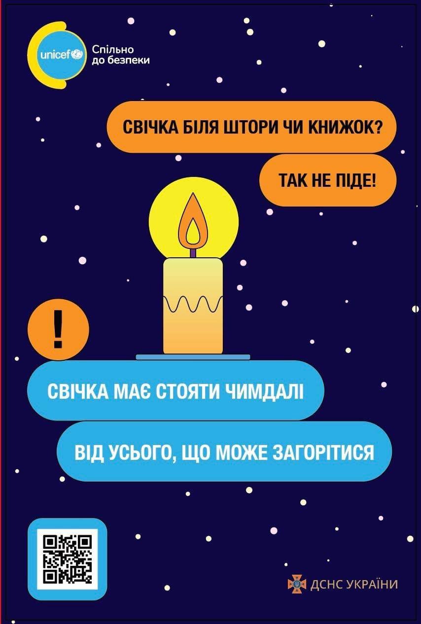 Під час користування свічками ставте їх на негорючі поверхні, подалі від штор і меблів.