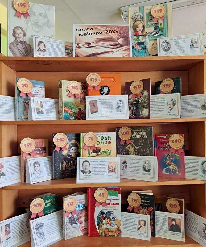 «Світ улюблених героїв» під такою назвою оформила книжкову викладку до Міжнародного дня дитячої книги Гринцівська СБФ, а центральна міська бібліотека презентувала виставку-календар «Книги-ювіляри –2026».