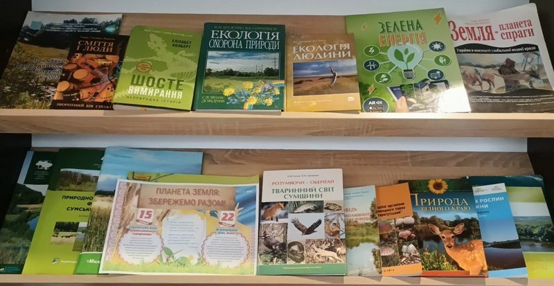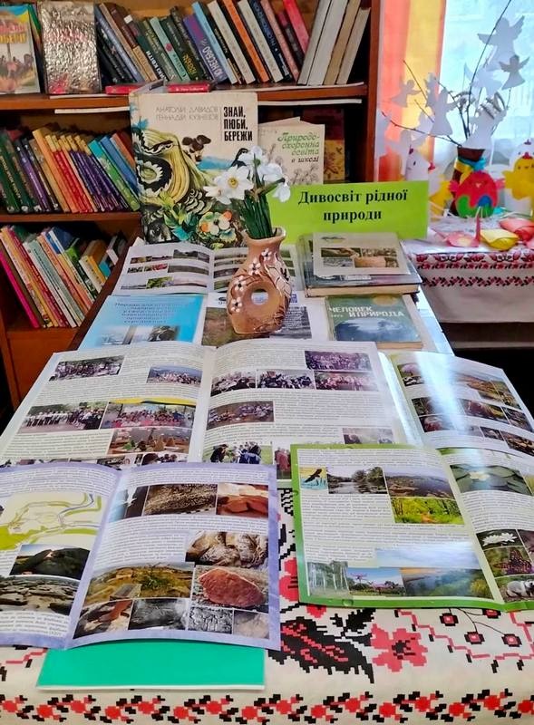 В рамках Тижня в книгозбірнях оформлено тематичні книжкові виставки: «Доторкнутися до природи серцем» (Калюжнівська СБФ), «Дивосвіт рідної природи» (Маловисторопська СБФ), «Планета Земля: збережемо разом» (центральна міська бібліотека), «Збережемо дивосвіт Землі» (міська бібліотека №2), «Екологія ХХІ століття: тривоги і надії» (міська бібліотека №1).