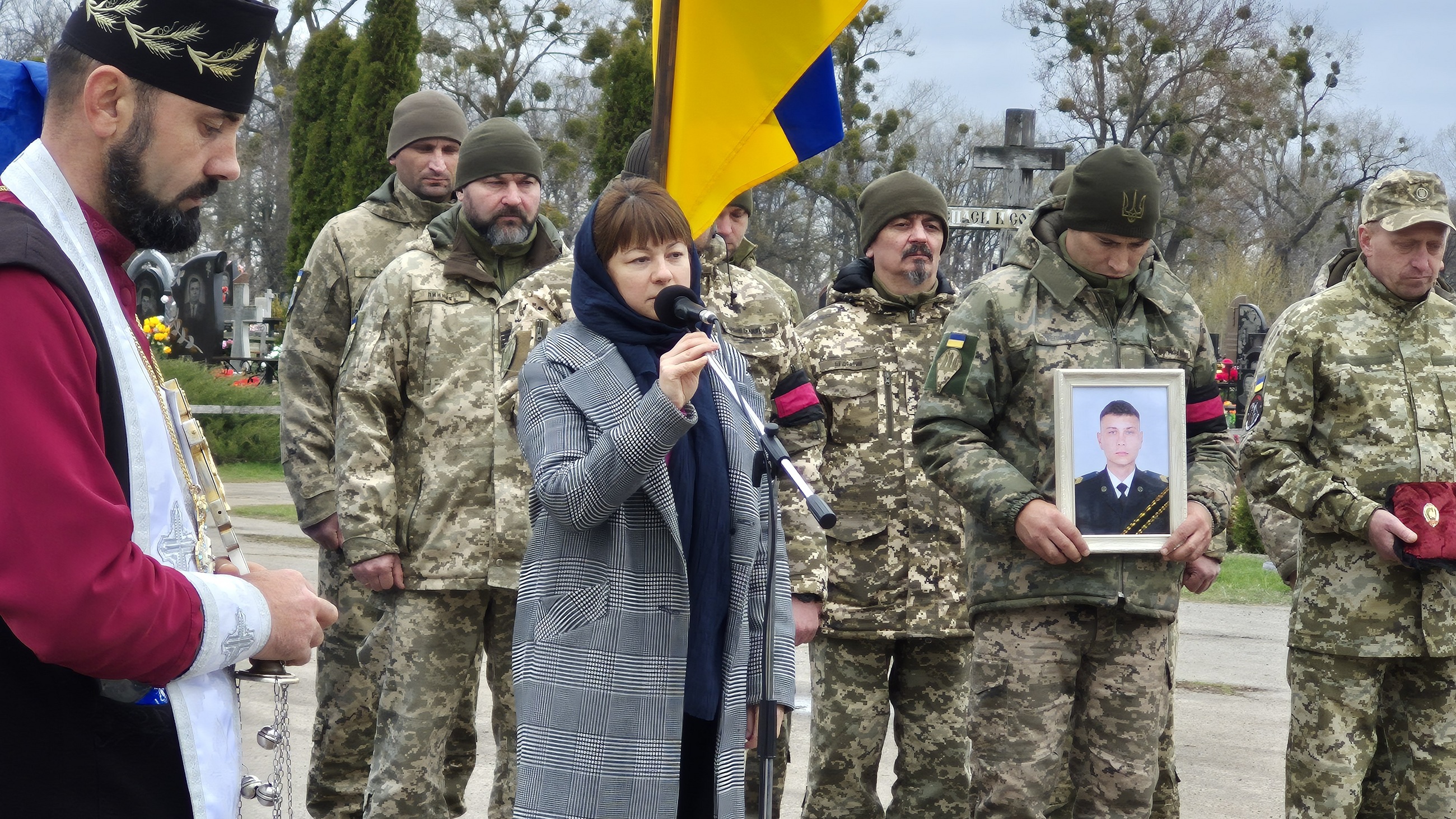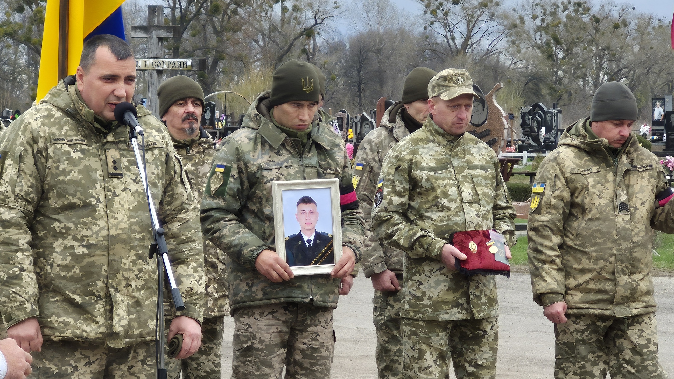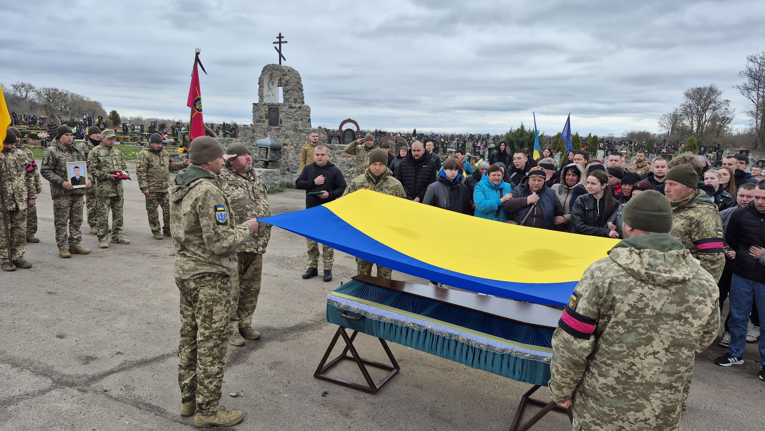 Поховали бійця на Алеї Слави міського кладовища з усіма військовими почестями під звуки Державного Гімну України та триразовий залп почесної варти.