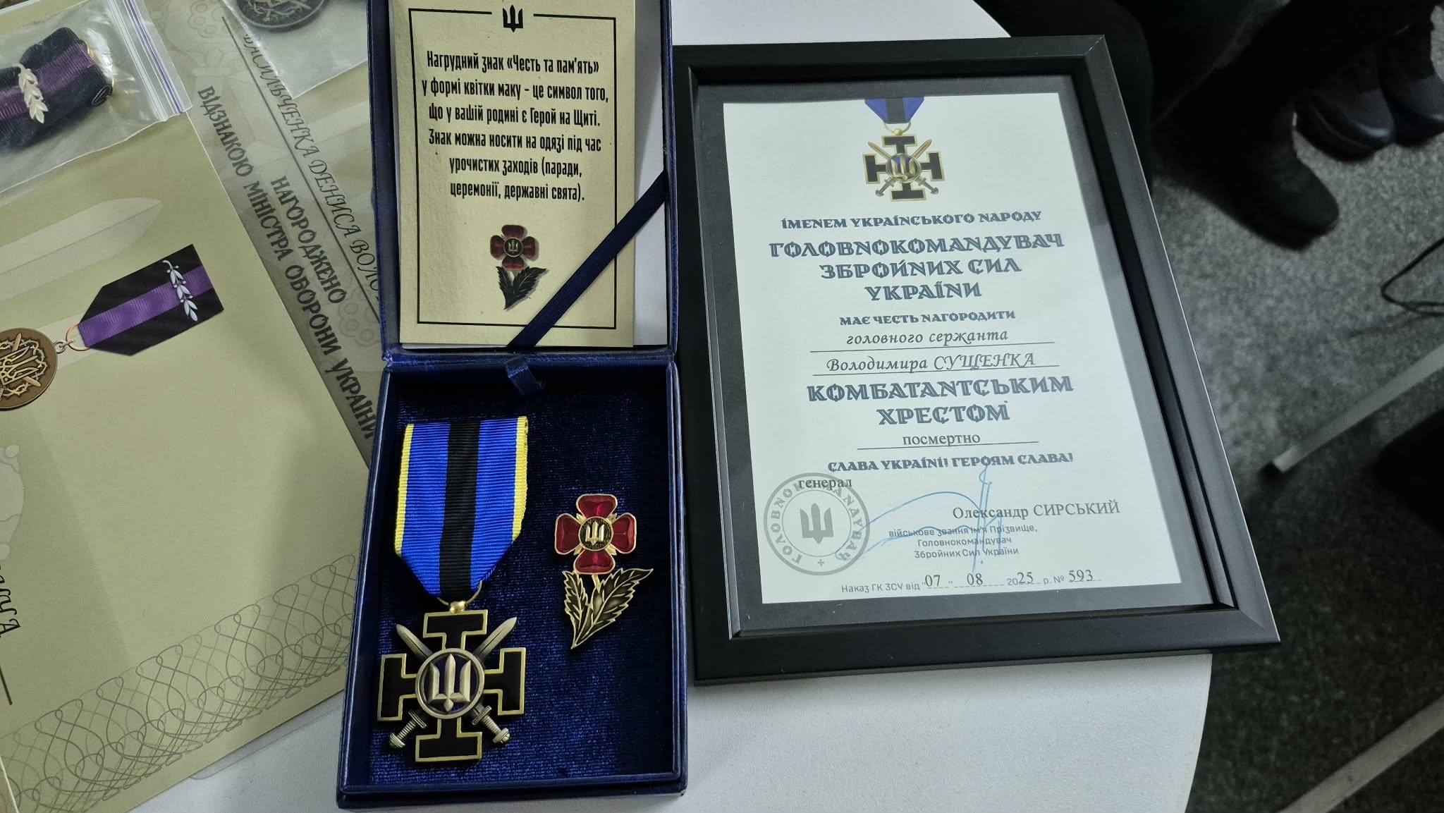 Посмертно Комбатантським хрестом нагороджено головного сержанта Володимира Сущенка — як символ глибокої вдячності за його мужність, відвагу та самопожертву в боротьбі за незалежність України.