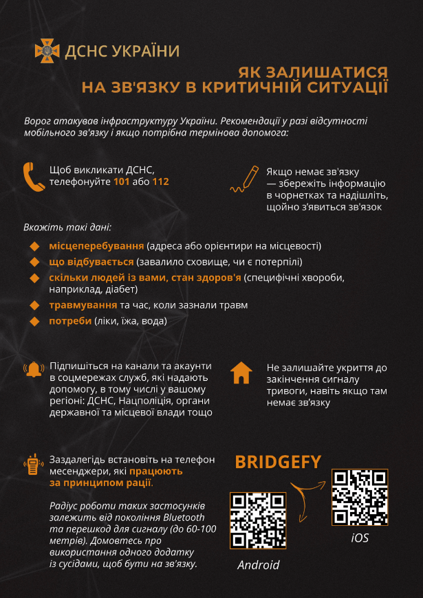 Рекомендації для населення у разі відсутності мобільного зв’язку та як діяти, якщо терміново потрібна допомога!