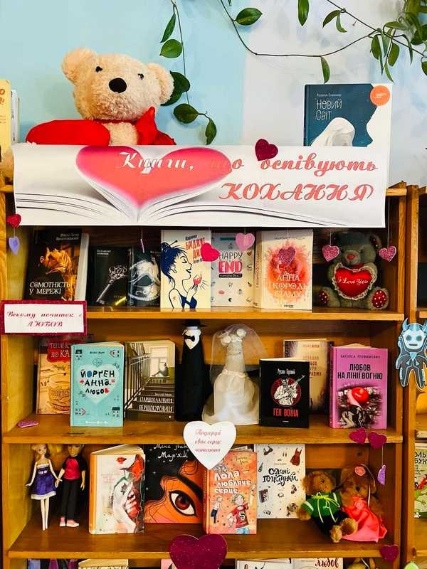 Бібліотеки Лебединщини запрошують всіх на таємне побачення з романтичною книгою. В книгозбірнях оформлено тематичні фото зони, книжкові виставки, перегляди, інсталяції. Ви зможете прочитати про романтичні почуття під час російсько-української війни у романі «Любов на лінії вогню» В. Трохимович або ж відпочити душею, гортаючи сторінки «Теплих історій до кави» Н. Гербіш.