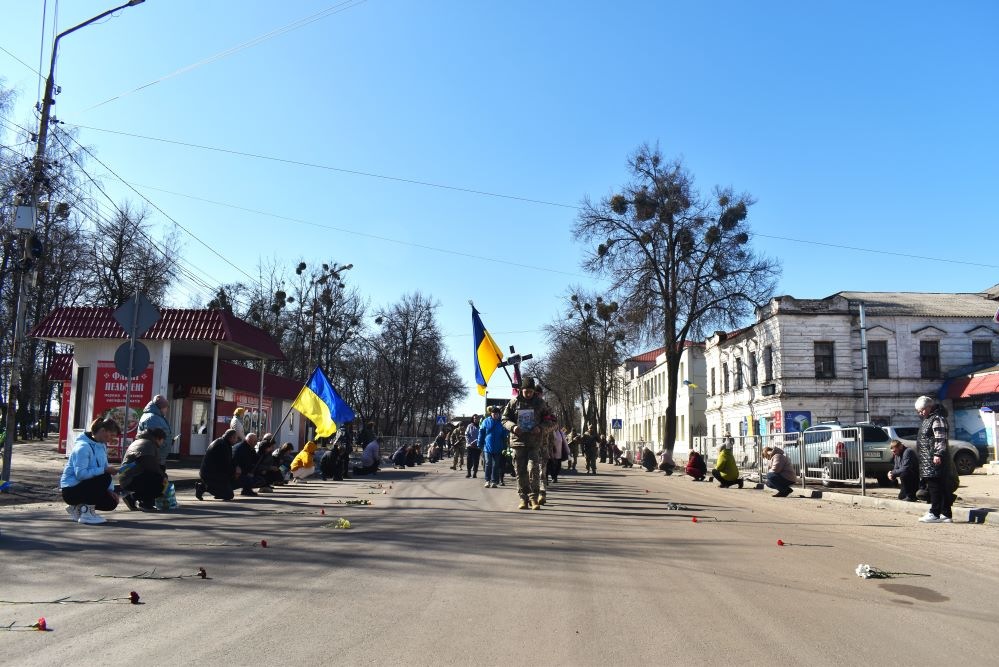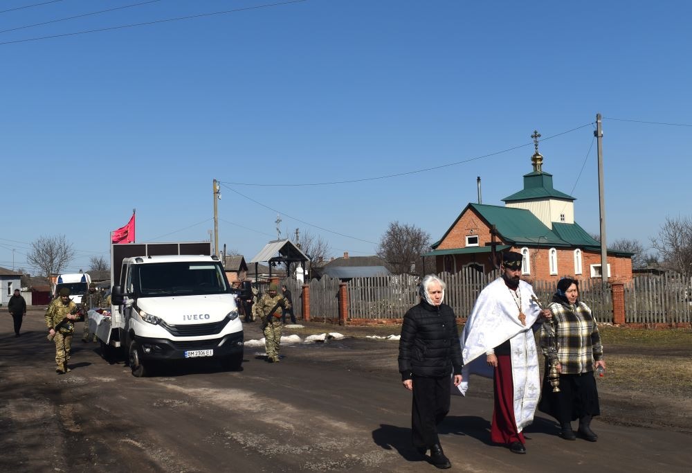 Церемонія прощання з полеглим Воїном розпочалася у Свято – Троїцькій Успенській церкві. Далі траурна процесія рушила вулицями Лебедина крізь живий коридор, де кожен схилив голову у скорботі, проводжаючи Героя та встеляючи останній шлях його живим квітами…