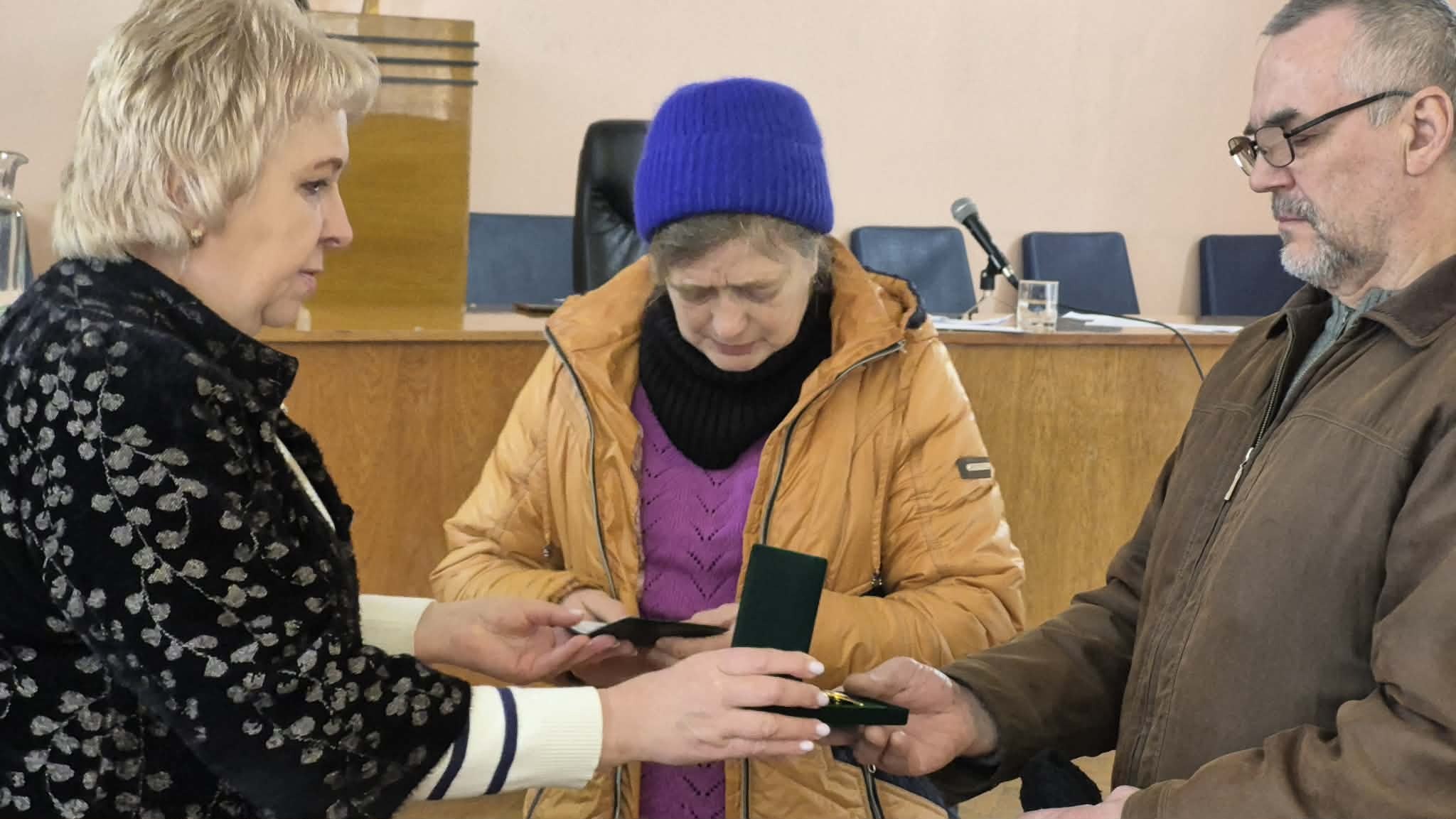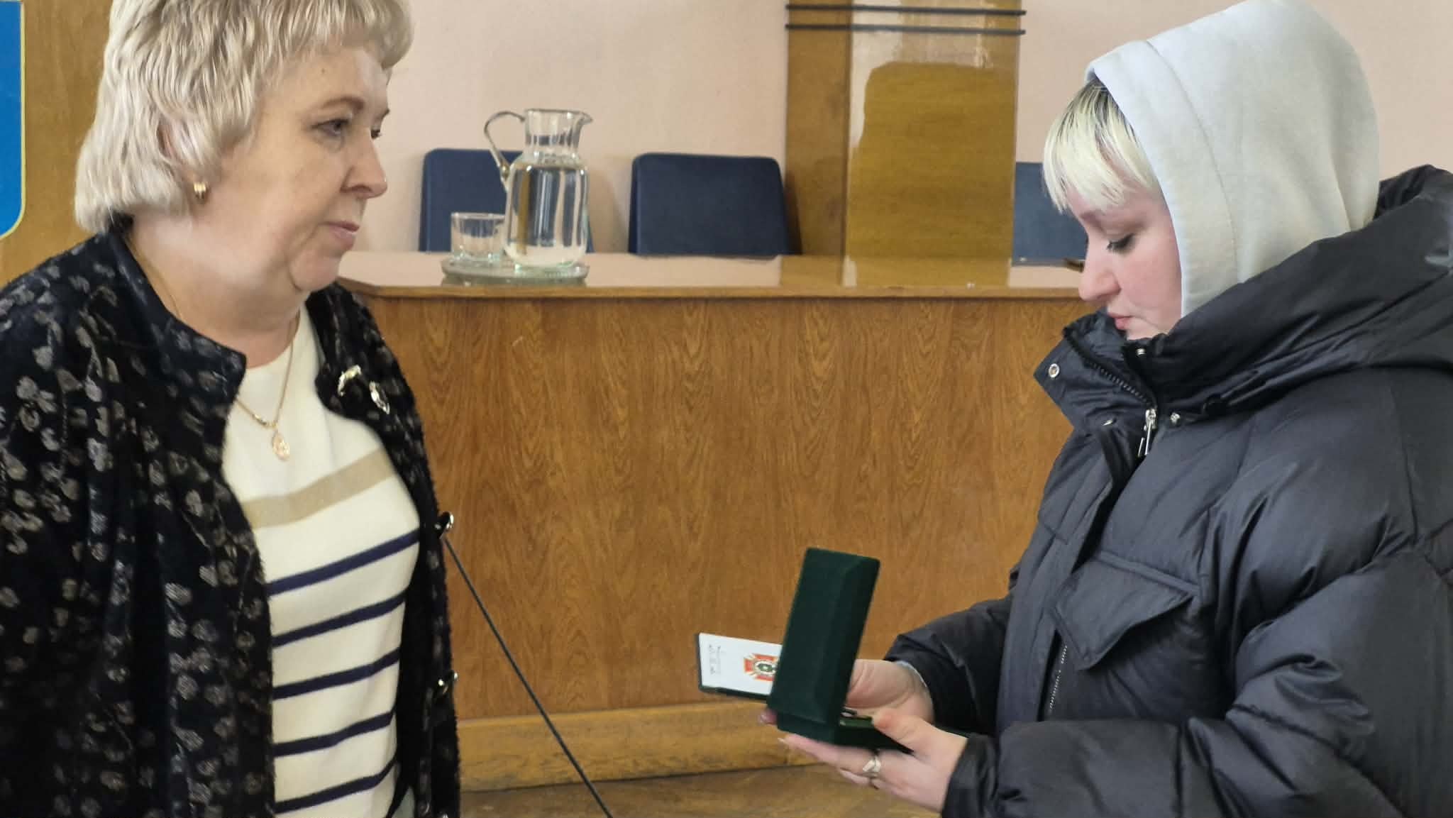 Почесні відзнаки - нагрудний знак і посвідчення до нього - урочисто вручила членам родин військових виконуюча обов'язки міського голови Світлана Горошко.