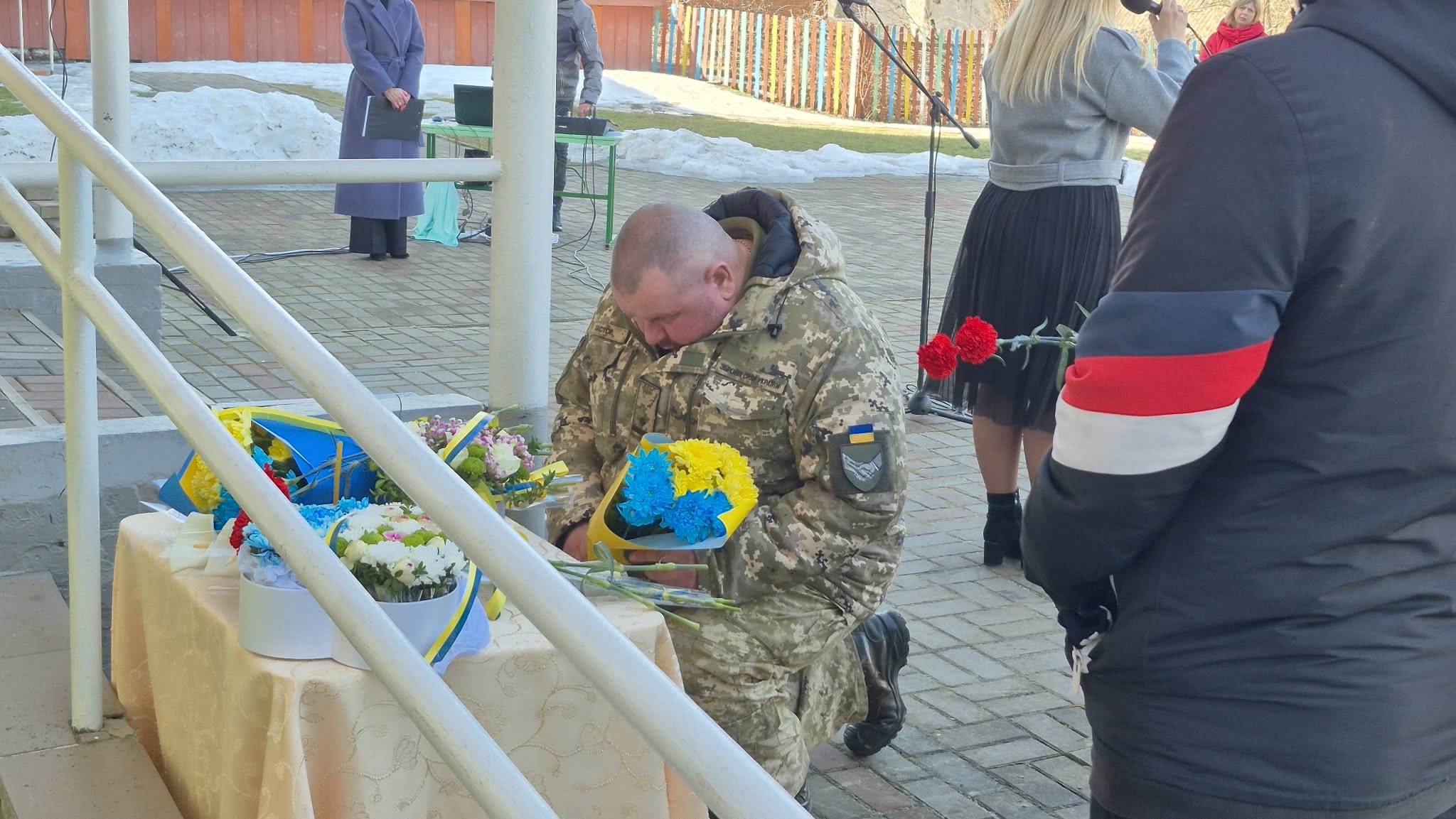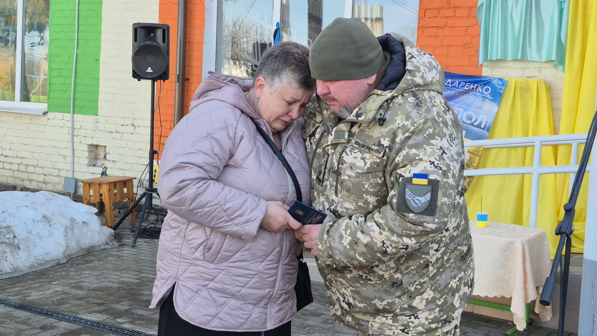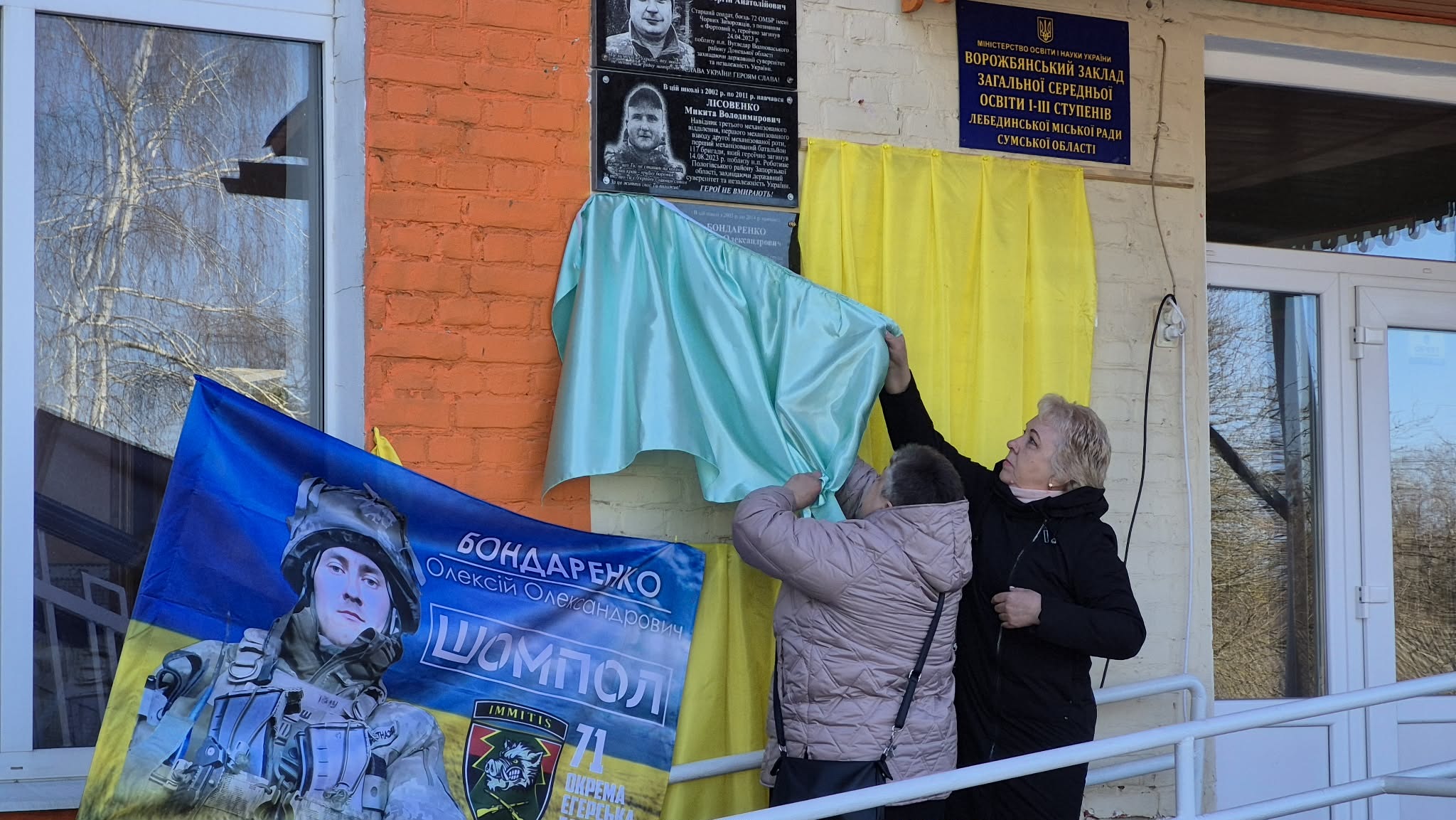 На подвір’ї школи, де відбулося відкриття меморіальної дошки колишньому учню, односельцю, мужньому й героїчному захиснику, зібралися рідні, друзі, вчителі, представники влади та жителі села Ворожба.