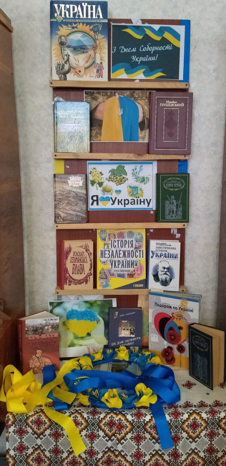 Історичний репортаж та книжкова виставка «Соборна Україна навіки єдина» пройшли в центральній міській бібліотеці, міська бібліотека №1 оформила книжкову виставку «З Днем Соборності, Україно!» та провела бібліографічний огляд тематичної літератури, міська бібліотека №2 презентувала користувачам перегляд літератури «Соборна Україна - від ідеї до життя», а міська бібліотека №3 оформила виставку тематичних видань «Ми - єдина Україна" та виставку дитячих поробок "Соборність очима дітей".