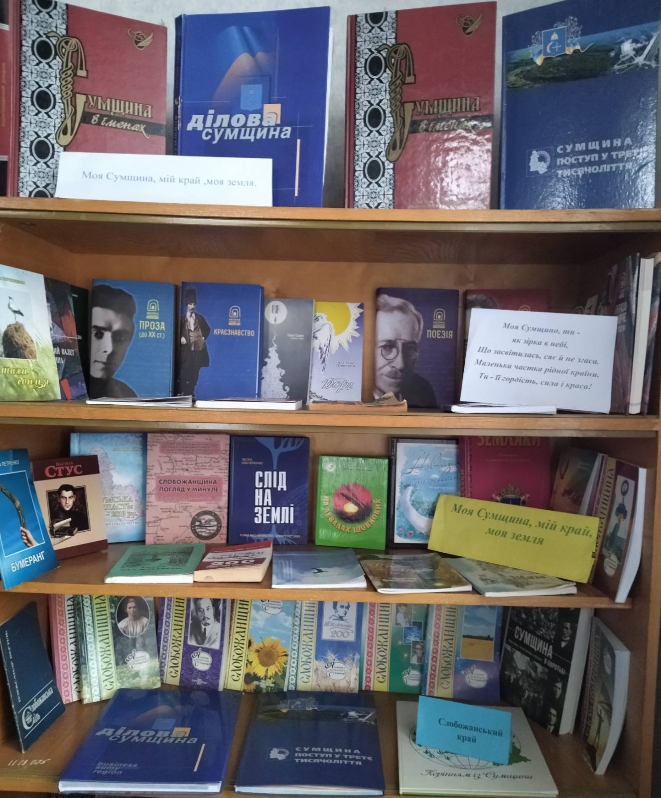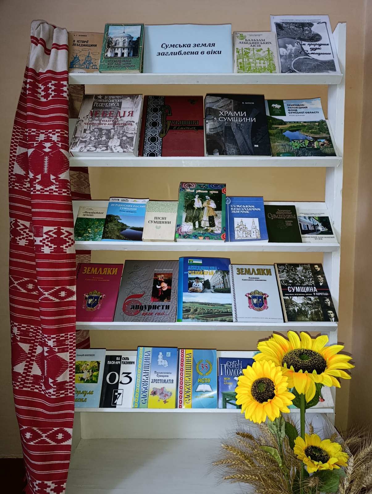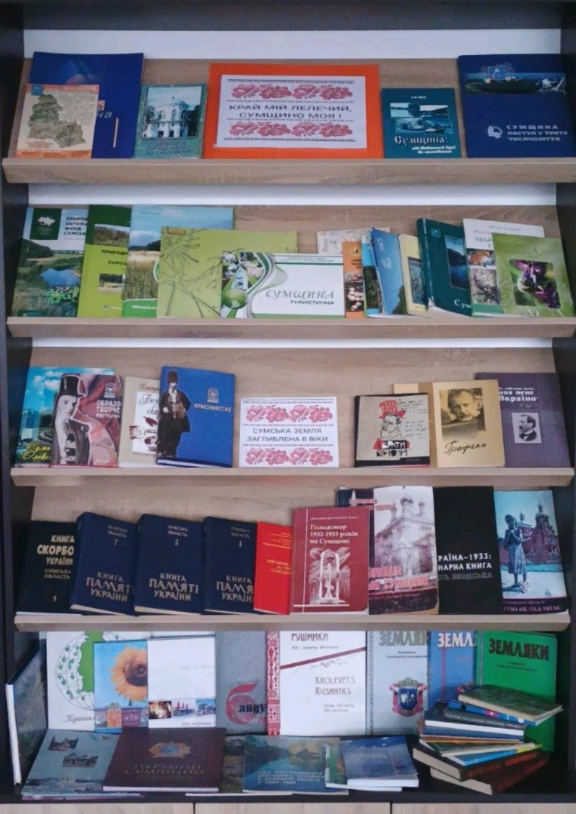 З нагоди 87-річниці створення Сумської області в бібліотечних закладах Лебединщини оформлено тематичні книжкові виставки про наше славне минуле та героїчне сьогодення: «Сумська земля заглиблена в віки» (центральна міська бібліотека, Червленівська СБФ), «У рідному краї - з рідною книгою» (Рябушківська СБФ), «Моя Сумщина, мій край, моя земля» (Ворожбянська СБФ), «Стежинами рідного краю» (Боровеньківська СБФ, Будильська СБФ), «Нові книги - нові відкриття» (Штепівська СБФ), «Благословенна у віках Сумська земля» (міська бібліотека №2), «Немає кращої землі, ніж та, що зветься рідним краєм»» (Лебединобобрицька СБФ).